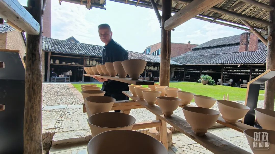 △匠人正在晾晒陶瓷制品。(总台央视记者范凯拍摄)