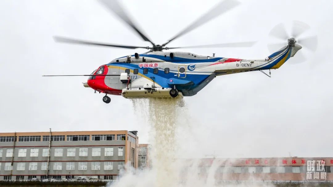△昌飞制造的AC313直升机正在进行护林灭火演练。