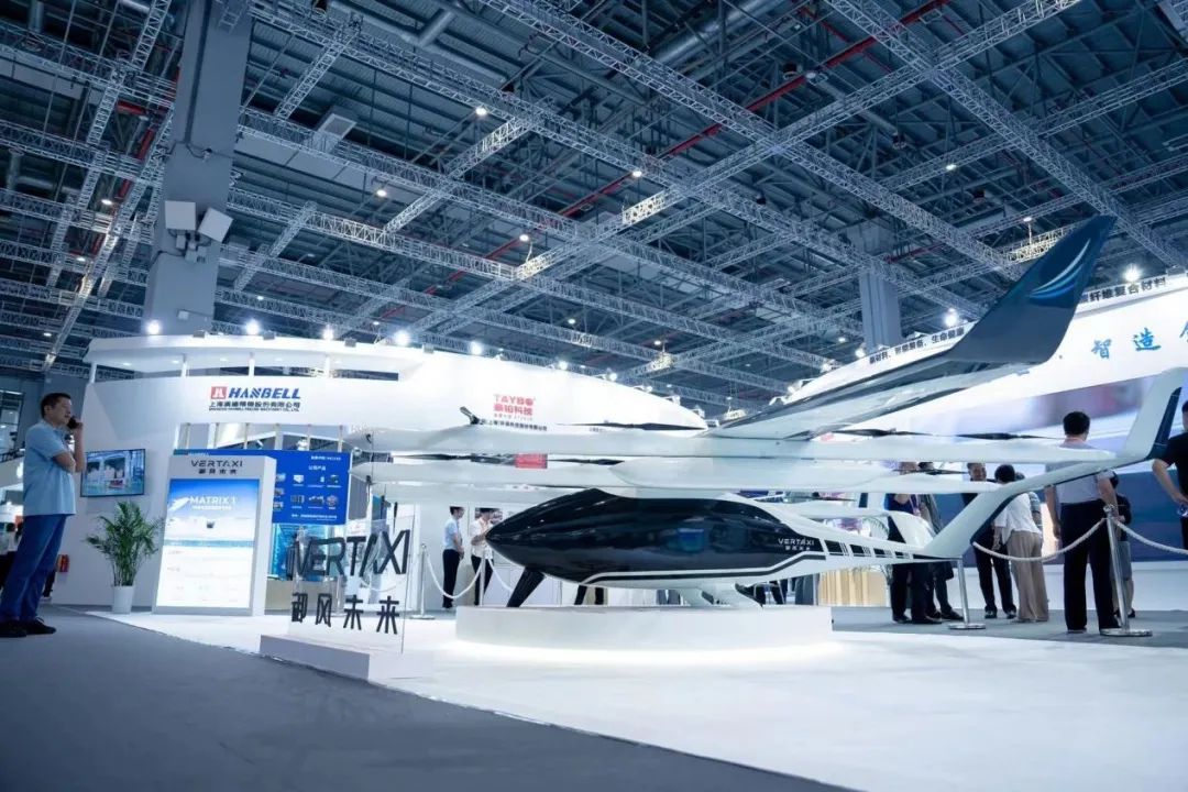 展区里,一款国产电动垂直起降载人飞行器M1的二分之一缩比模型机尤为引人注目。工作人员介绍,这款飞行器使用纯电能源,可飞行250公里,共有5个座位数,未来将主要用于城市通勤和中短途城际间出行。