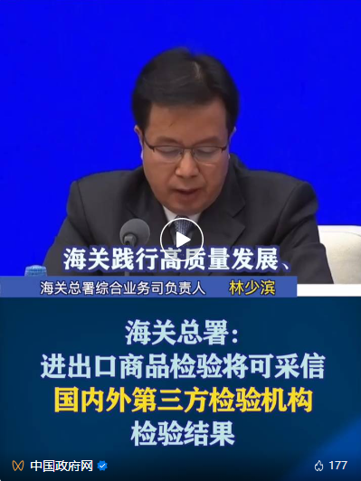 ●海关将积极与更多国家开展检验检疫电子证书国际联网核查,扩大第三方检验检测结果采信范围。