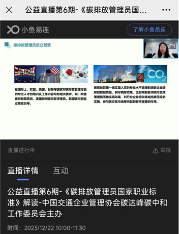 6.2023年12月22日,举办第六期公益讲座- “《碳排放管理员国家职业标准》相关内容解读”。