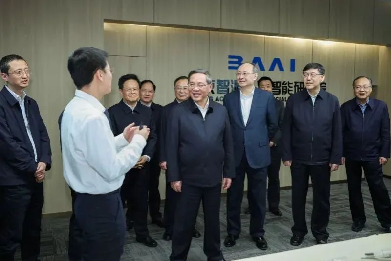 3月13日,中共中央政治局常委、国务院总理李强在北京调研。李强在北京智源人工智能研究院详细了解大模型前沿技术研发情况,察看人工智能产品展示。新华社记者 刘彬 摄