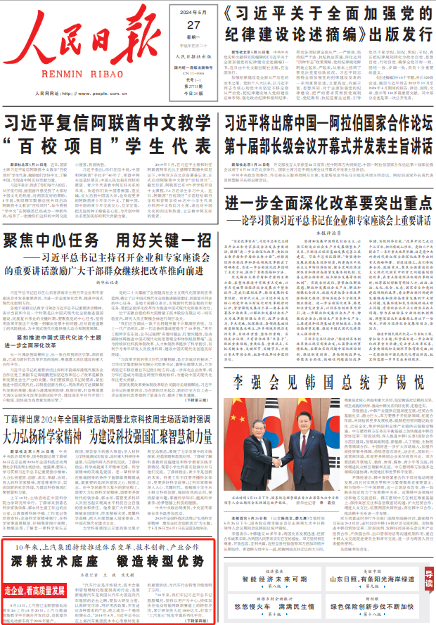 习近平总书记指出:“高质量发展是全面建设社会主义现代化国家的首要任务”。去年底举行的中央经济工作会议提出:“必须把坚持高质量发展作为新时代的硬道理”。新时代新征程,国有企业坚定不移推动高质量发展,不断增强创新动力、发展活力,有力支撑我国经济持续回升向好。近期,人民日报推出“走企业,看高质量发展”专栏,展现了多家国有企业在高质量发展道路上奋力前行的新实践新成效。今天,为您分享——《10年来,上汽集团持续推进体系变革、技术创新、产业合作——深耕技术底座 锻造转型优势(走企业,看高质量发展)》。