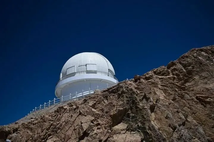 这是在青海省海西蒙古族藏族自治州茫崖市冷湖镇赛什腾山拍摄的中国科学技术大学和中国科学院紫金山天文台联合研制的大视场光学成像望远镜——墨子巡天望远镜(2024年4月20日摄)。新华社记者 张龙 摄