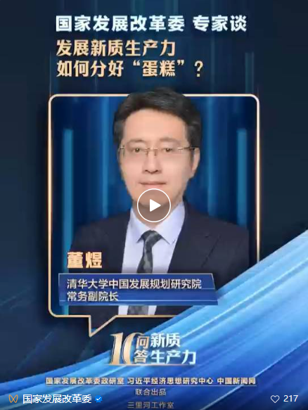 国家发展改革委政研室、习近平经济思想研究中心、中国新闻网联合出品“新质生产力十问十答”专家谈栏目,邀请权威专家解读新质生产力。