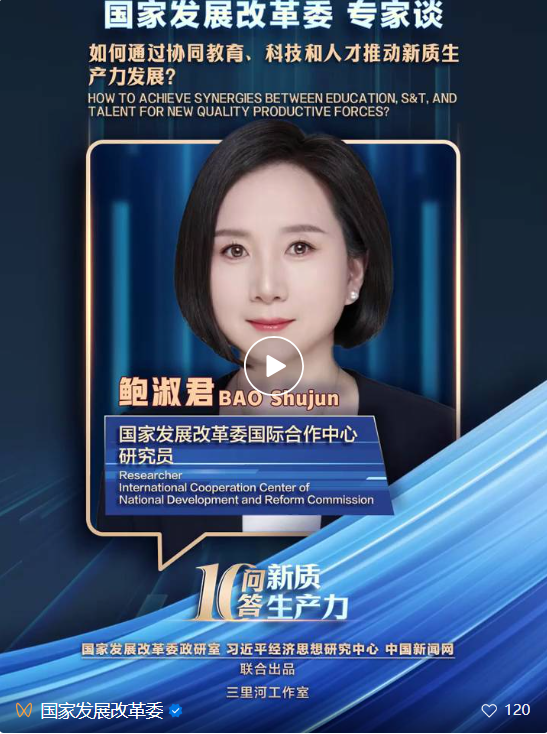 国家发展改革委政研室、习近平经济思想研究中心、中国新闻网联合出品“新质生产力十问十答”专家谈栏目,邀请权威专家解读新质生产力。