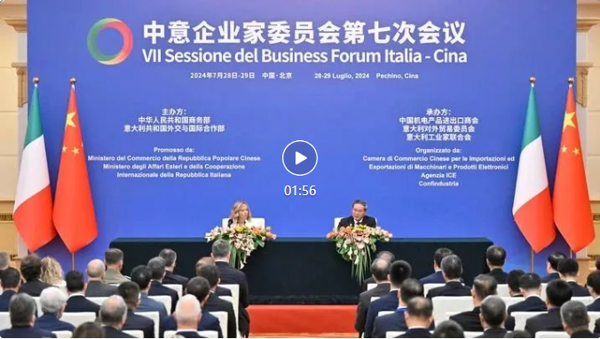 国务院总理李强7月28日下午在北京人民大会堂同意大利总理梅洛尼共同出席中意企业家委员会第七次会议开幕式并致辞。中意两国150余位企业家出席。