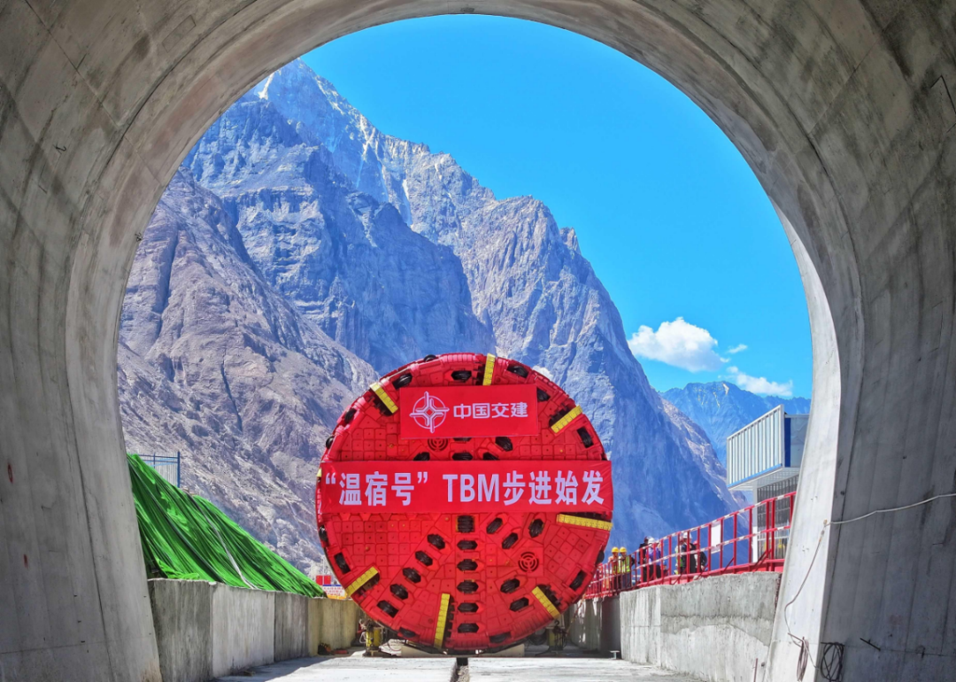 西天山特长隧道总长15.7千米,最大埋深2365米,是世界埋深最大的大断面公路隧道。面对这项世界级工程,中交集团自主研发“温宿号”TBM硬岩掘进机,增强了防卡脱困能力,可实现在突涌水、岩爆、高地温、断层破碎带等条件下,安全、环保、高效掘进。