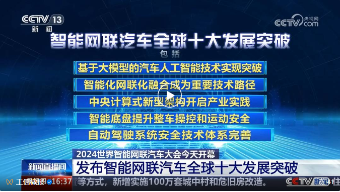 在2024世界智能网联汽车大会举办期间,中国工程院相关负责人作为代表,发布了智能网联汽车全球十大发展突破。