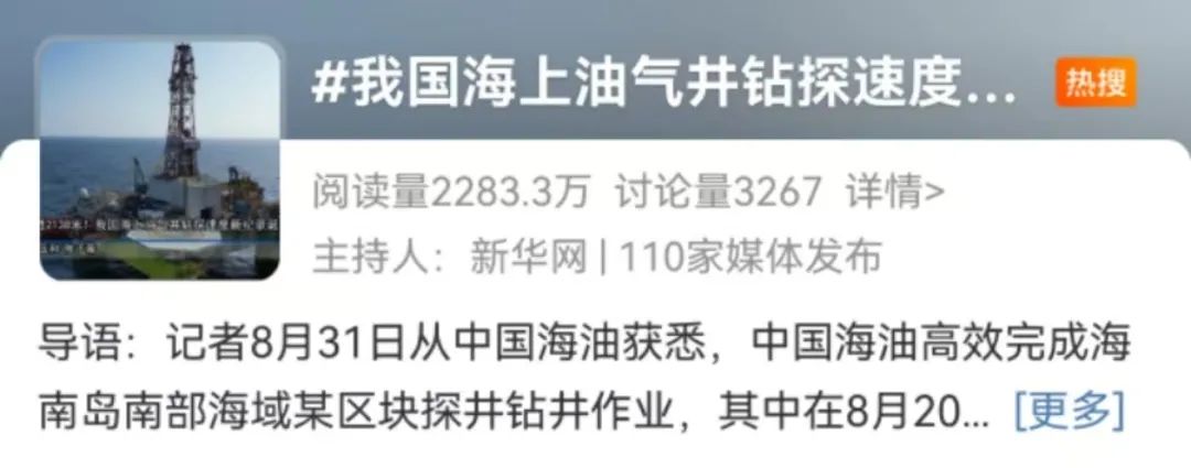 #我国海上油气井钻探速度新纪录#