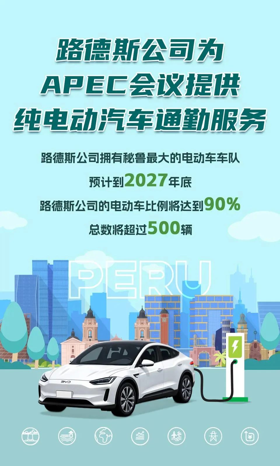 11月13日至15日,亚太经合组织(APEC)工商领导人峰会在秘鲁首都利马举行。APEC会议期间,官方摆渡用车中有20辆,为中国三峡集团所属长江电力秘鲁路德斯公司提供的中国产新能源车。