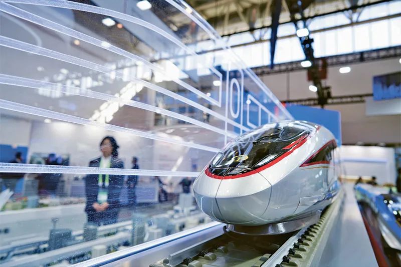 2024年11月26日至30日,第二届中国国际供应链促进博览会在北京举行。本届链博会在首届链博会清洁能源链、智能汽车链、数字科技链、健康生活链、绿色农业链和供应链服务展区——“五链一展区”的基础上新增先进制造链展区。图为11月27日在先进制造链展区中国中车展台拍摄的“CR400BF-Z复兴号智能动车组”模型。 新华社发 那宇奇/摄