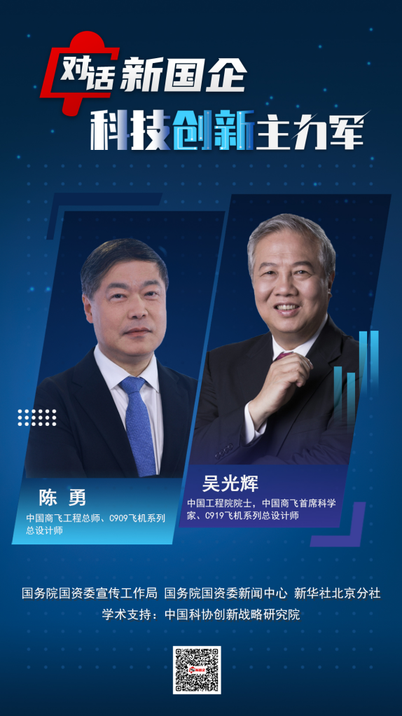 从C909到C919,从设计图纸到飞向万米高空,中国商用飞机的成长历程印证了:唯有坚持自主创新、面向市场、人才筑基,方能托起“让中国大飞机翱翔蓝天”的梦想。近日,中国工程院院士、中国商飞首席科学家、C919 系列总设计师吴光辉,中国商飞工程总师、C909系列总设计师陈勇受邀参加“对话新国企·科技创新主力军”系列融媒体访谈。
