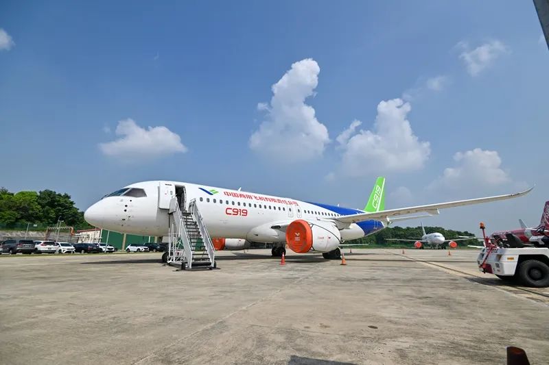 2024年3月13日,中国国产商用飞机C919大飞机在马来西亚雪兰莪州的苏丹阿卜杜勒·阿齐兹·沙阿机场作静态展示。新华社发(张纹综 摄)