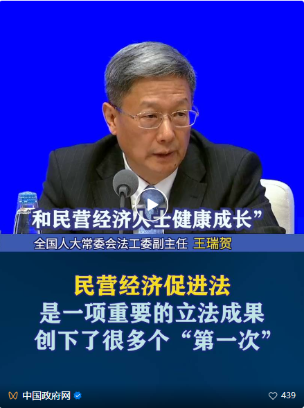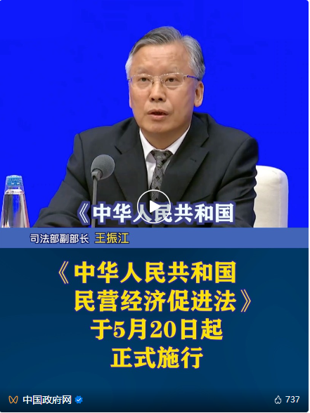 《中华人民共和国民营经济促进法》于5月20日起正式施行