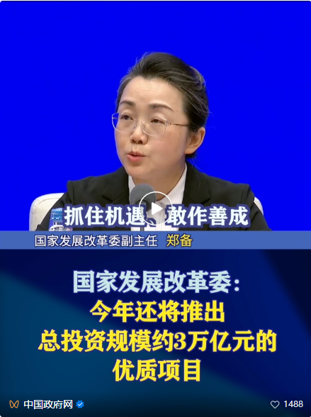 今年将推出总投资规模约3万亿元的优质项目,支持民营企业参与