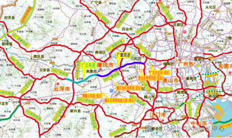 广云高速改扩建工程全长37.3公里,起点位于肇庆市高要区新桥镇,与广肇高速相接,路线由东向西途经肇庆市高要区白诸镇、云浮市云城区思劳镇和安塘街道,止于云浮市东面的河口街道,接广梧高速。项目由双向四车道扩建为双向八车道,预计2027年底建成通车。