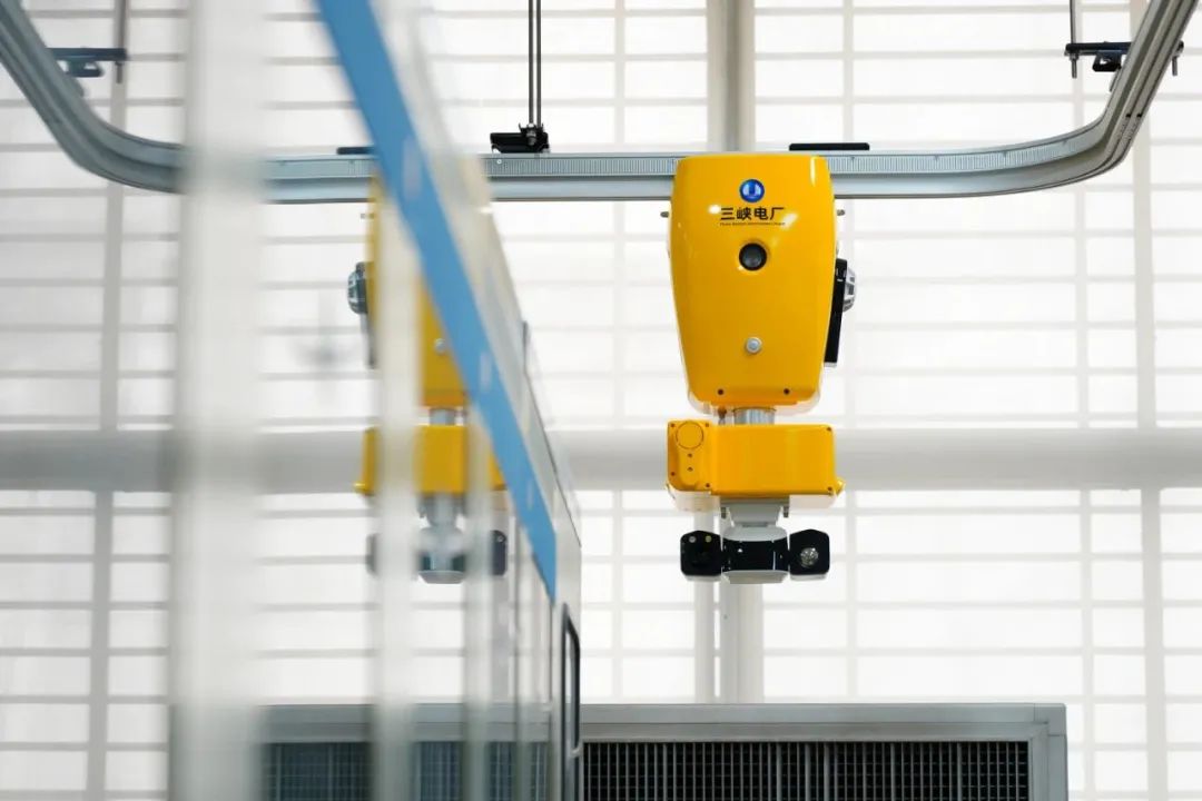 在三峡左岸电站辅助盘室,名为“天行者”的电气二次盘柜巡检机器人正沿着铺设在天花板上的轨道有序巡检。可伸缩的“脖子”上搭载着高清晰数字摄像头和温度检测仪,实现360度旋转,24小时不间断自主巡检工作。