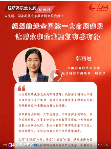 经济高质量发展专家谈 | 纵深推进全国统一大市场建设 让群众和企业更加有感有得