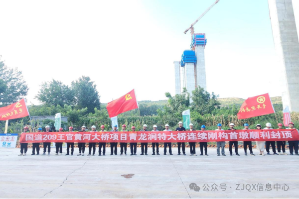 8月13日,由中交路建承建的209国道王官黄河大桥及连接线工程(河南段)青龙涧特大桥首墩顺利封顶。