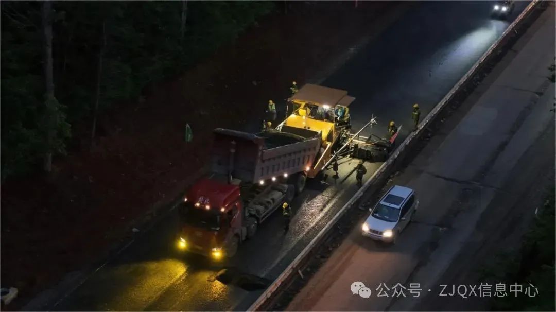 针对工期时间紧、施工任务重、作业环境复杂等多重困难,项目部制定详细施工计划和物资保障计划,细化分解每日施工任务,施工人员分班组24小时连续不间断施工,确保摊铺工作有序开展。