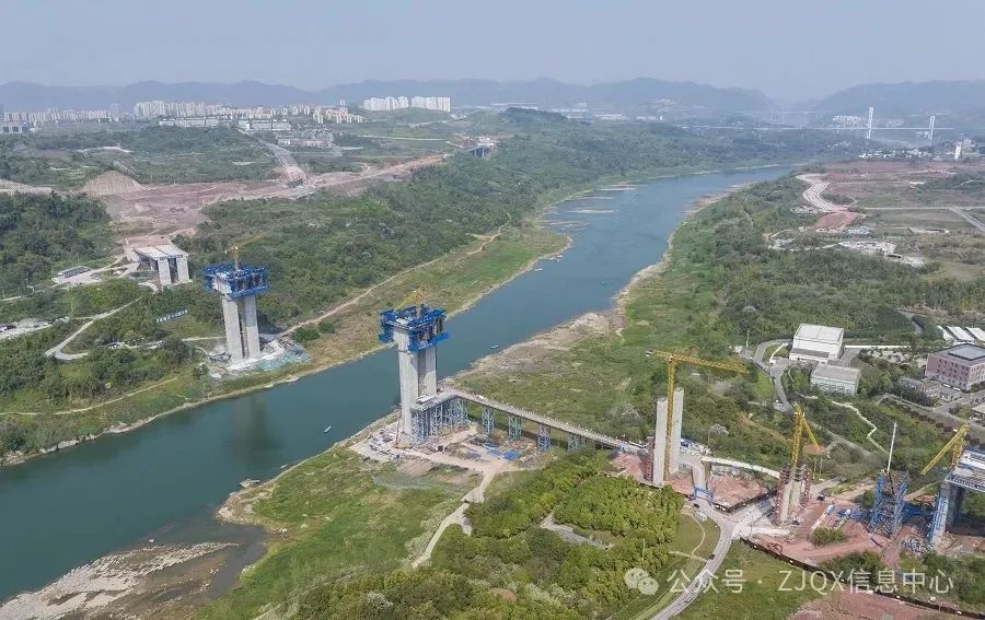 重庆宝山嘉陵江大桥建设现场。