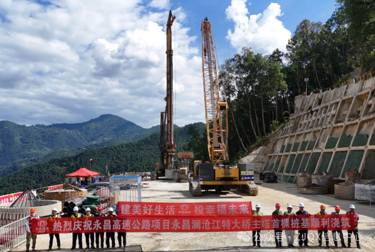 8月30日,云南永昌高速公路项目永昌澜沧江特大桥主塔首棵桩基顺利浇筑,标志着永昌高速公路项目建设进入提速阶段。