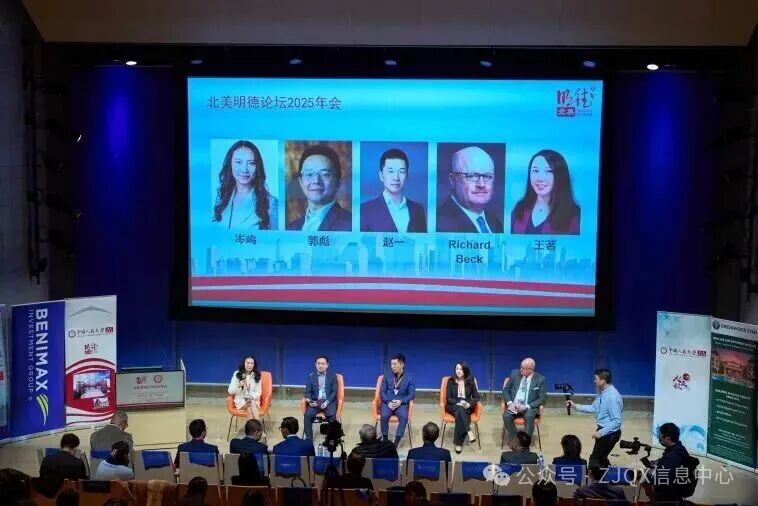 第一组讨论由USSA International 美洲 MAPS 主管、北美校友会副会长岑鸣校友主持。中国人民大学财政金融学院教授郭彪、安联保险资管固定收益投资部负责人赵一、京东物流北美东区负责人王茗、Klehr Harrison Harvey Branzburg LLP 合伙人 Richard M. Beck 出席。