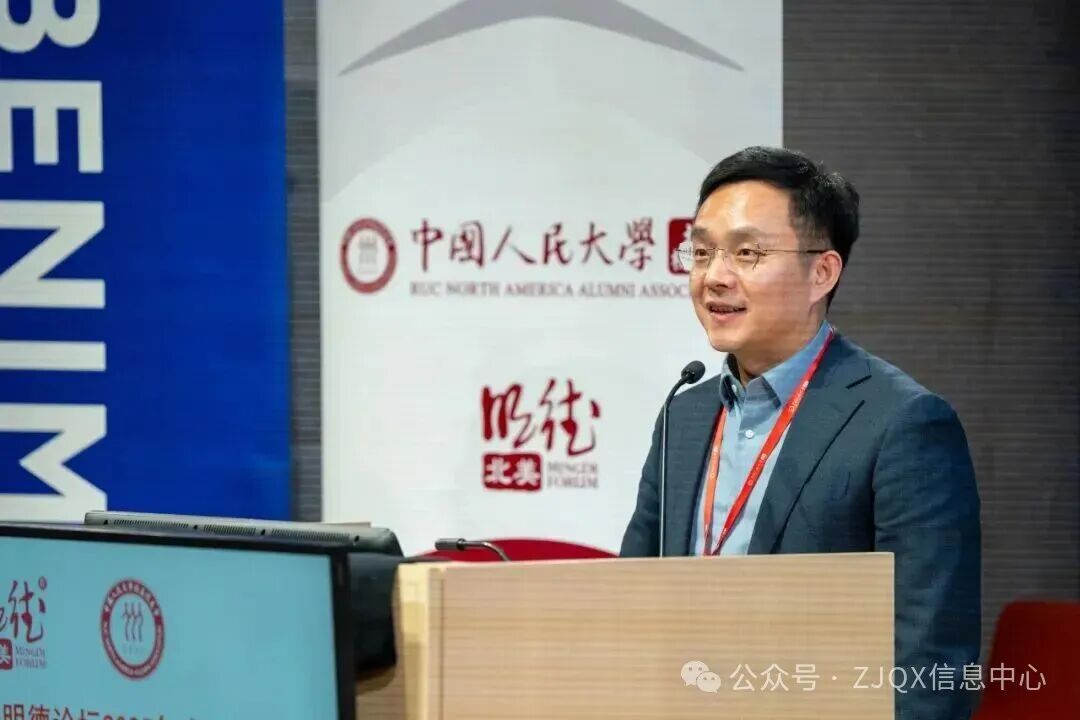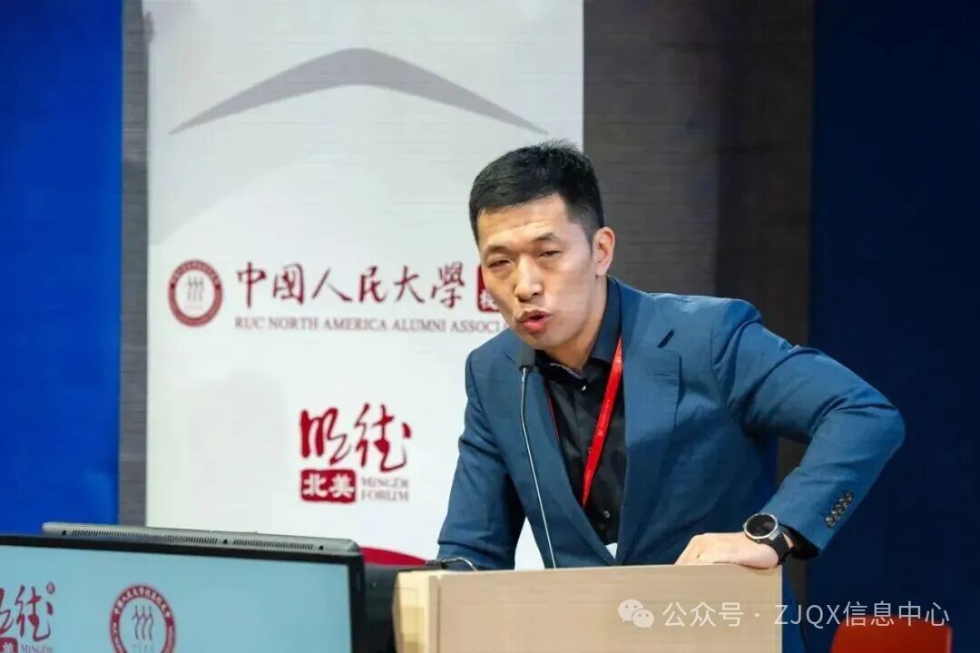 GIT绿智交通百人库首席专家&IBI国联股份董事长刘泉在致辞中代表国联股份向论坛致贺,并欢迎各位嘉宾校友的莅临。他感谢校友会多年来坚持举办论坛和服务社区,表示每次参加论坛都是一次“精神上的回归”。他认为,“明德”象征着知识追求与社会责任,是人大精神的延续,十年来论坛已成为连接中美思想的重要桥梁。