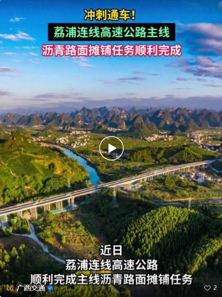 【广西】荔浦连线高速公路顺利完成主线沥青路面摊铺