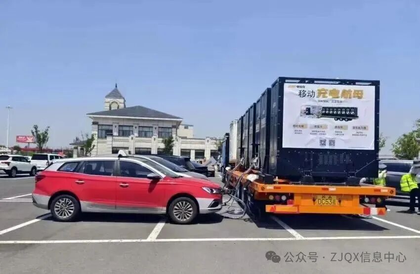 高速公路“移动充电航母”在京沪高速公路江苏平桥服务区投入使用。