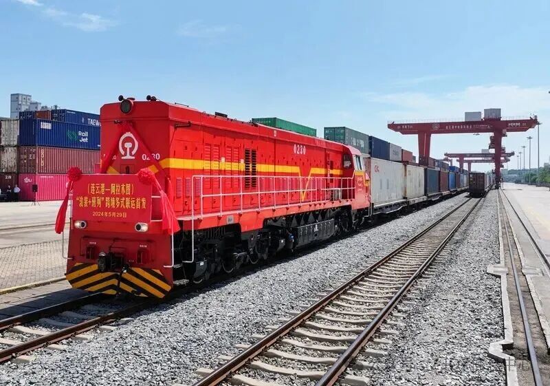 2024年5月29日,连云港至阿拉木图“滚装+班列”跨境多式联运专列首发。