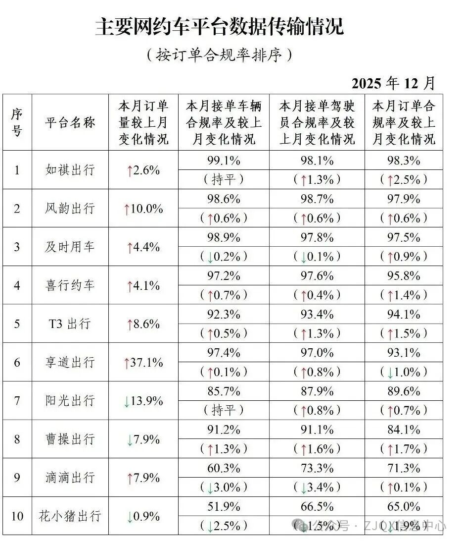 网约车监管信息交互系统发布2025年12月份网约车行业运行基本情况