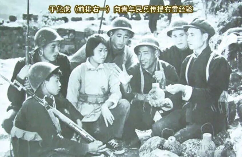 1944年10月,于化虎等5人受胶东军区委派到“烟潍一线”给民兵骨干传授制雷、布雷技术,并带领他们进行了历时4个多月的地雷战。到抗战胜利时,于化虎培养出来的“爆炸模范”就有20多名,会使用5种以上地雷的“爆炸手”达千余人。1945年,于化虎被评为“胶东民兵英雄”,胶东军区授予他“爆炸大王”称号。