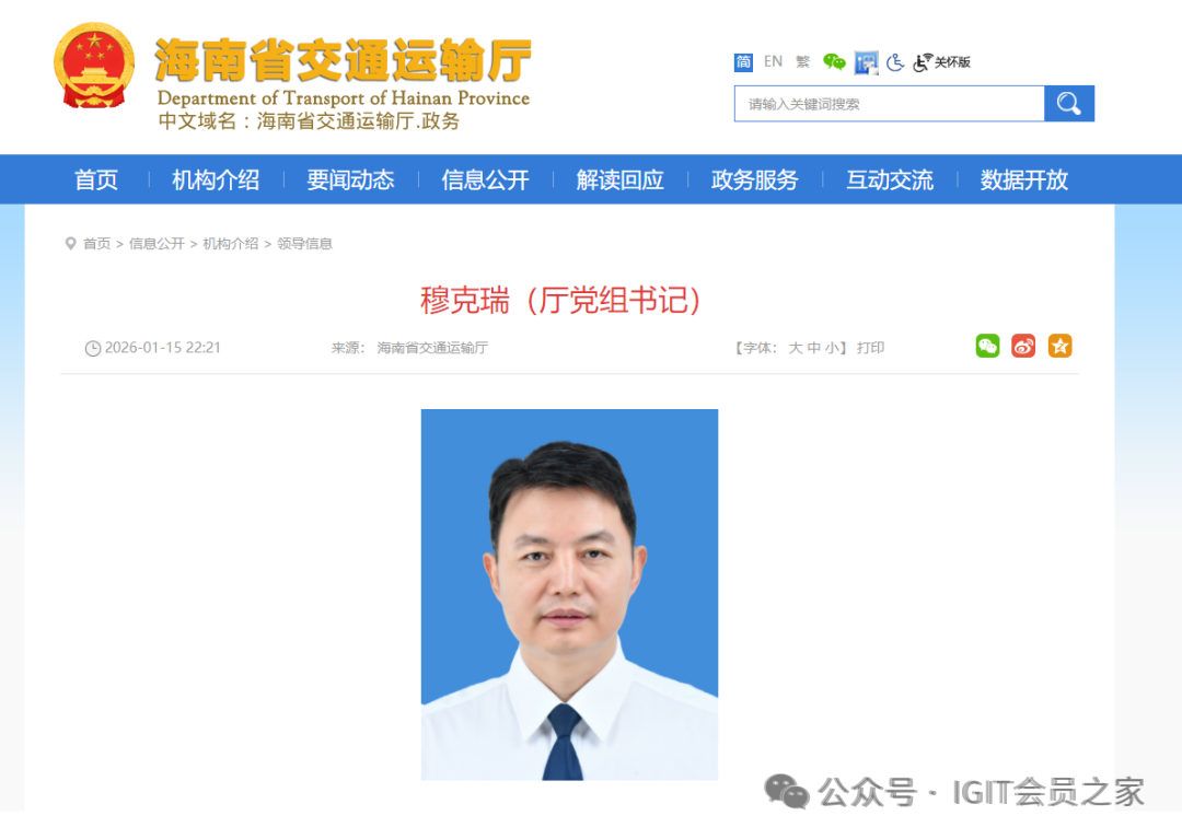日前,从海南省交通运输厅官网获悉,穆克瑞已任海南省交通运输厅党组书记、厅长。