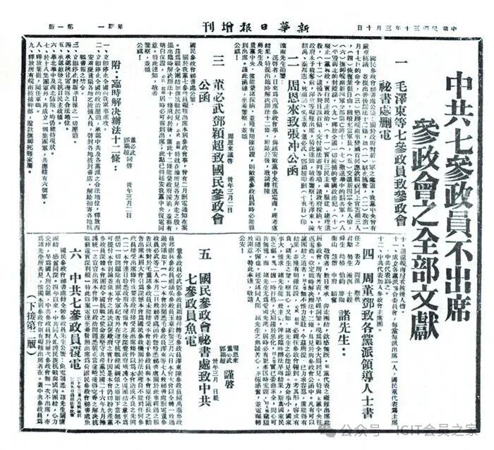 1941年3月10日,《新华日报(增刊)》刊发《中共七参政员不出席参政会之全部文献》。重庆市档案馆馆藏