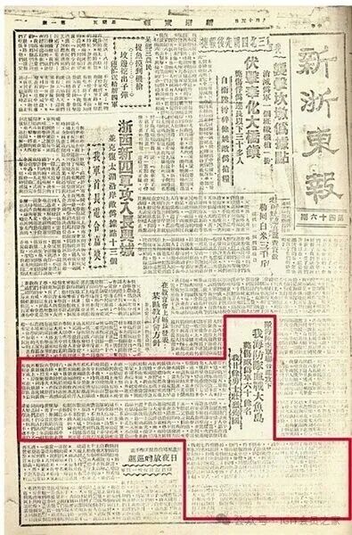浙东抗日根据地的《新浙东报》刊登报道大鱼山岛之战