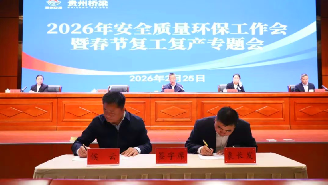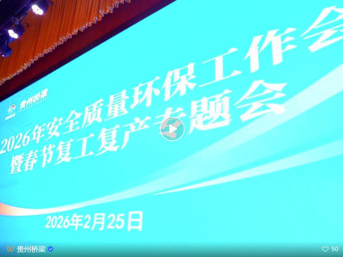 骐骥迎新春,策马踏新程。2月25日,我会理事单位贵州桥梁集团召开2026年安全质量环保工作会暨春节复工复产专题会。集团党委书记、董事长黄任远出席会议并讲话,集团班子成员陈仕荣、伍亭垚、付培云出席,会议由集团党委委员、副总经理侯云主持。