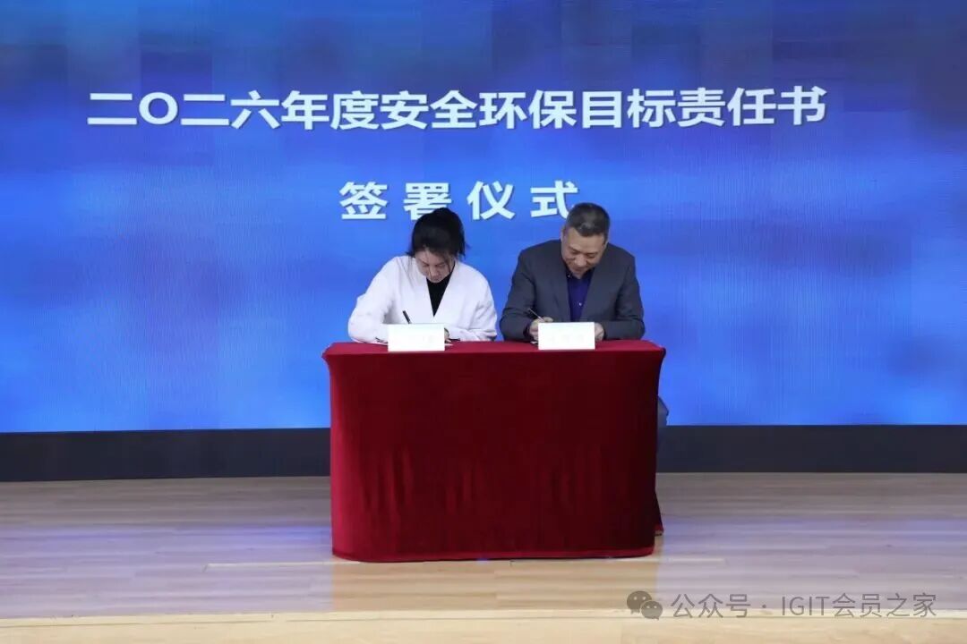 会议举行2026年安全环保目标责任书签署仪式,现场由公司党委副书记、总经理,安委会副主任刘观桥与公司安全总监刘晓萌签署目标责任书。