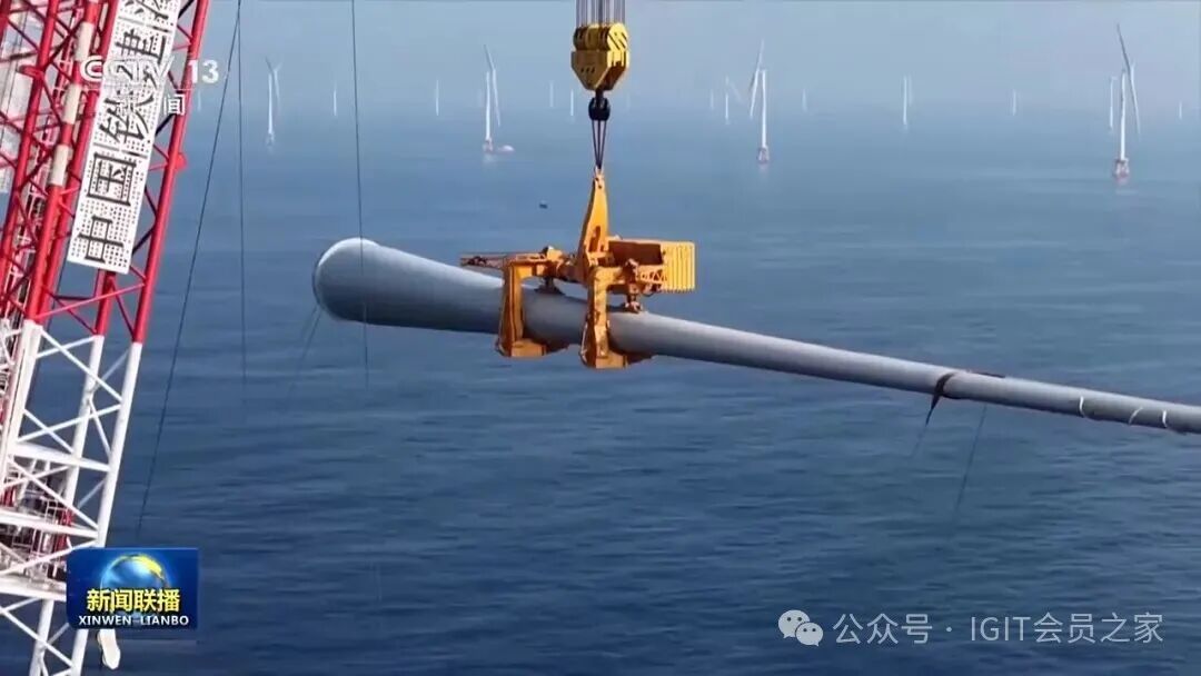 总台央视记者 刘柏煊:全球最大输送容量海上风电项目,现在进入开春后的首个集中施工期,8艘风机安装船在同步作业,超过120米长的巨型叶片,在百米高空中进行吊装。
