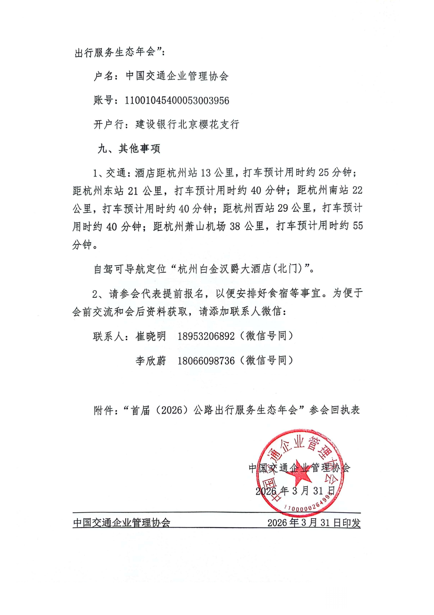 附件下载:“首届(2026)公路出行服务生态年会”参会回执表