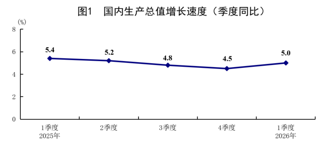 2025年各季度及2026年一季度GDP环比增速分别为1.1%、1.1%、1.1%、1.2%和1.3%。