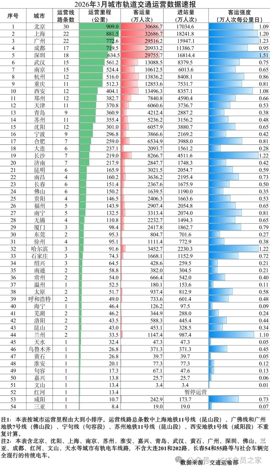2026年3月城市轨道交通运营数据速报