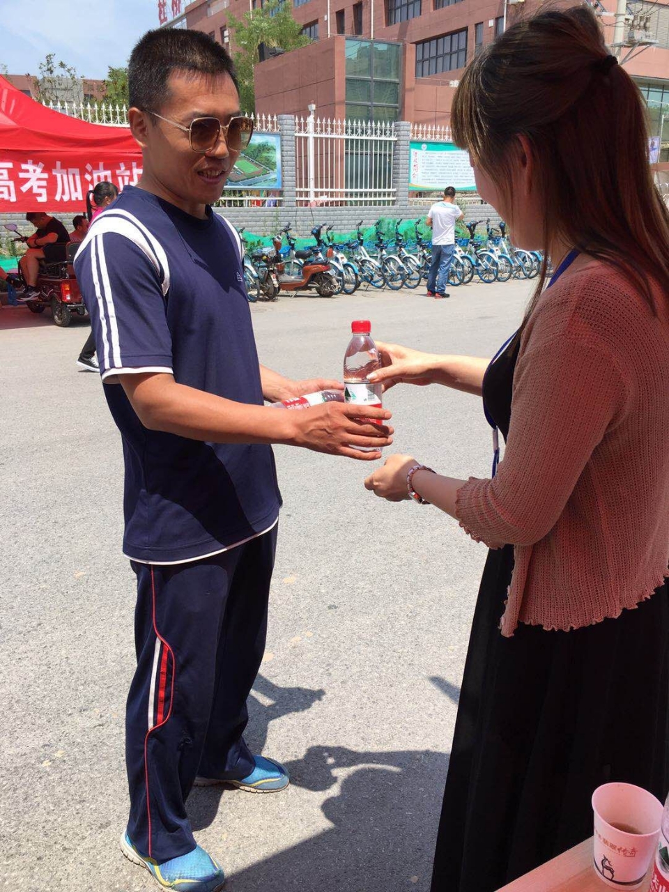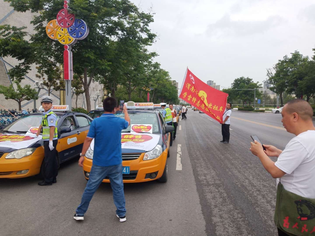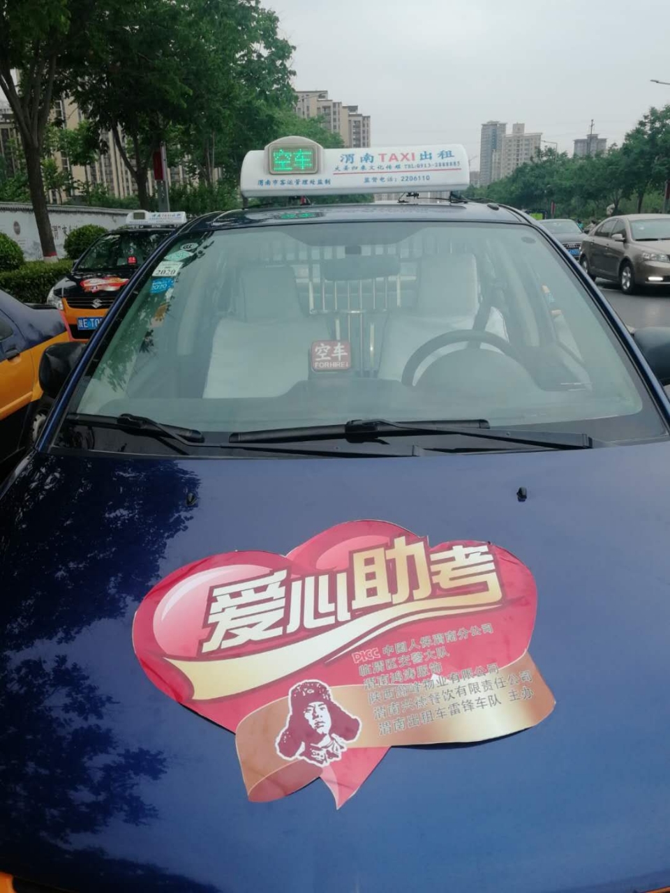 今天是个特殊的日子,是中国传统节日端午节,也是一年一度高考日子,端午节是大家在家和家人团聚的节日,但今天有这么些人放弃了和家人团聚走在大街上做起公益志愿服务,他们是渭南鸿涛服饰和渭南出租车雷锋车队,还有更多的爱心志愿者,他们顶着烈日在考场外静静等着高考学生走出考场为他们提供一瓶矿泉水,为考生鼓励加油,一个小小的举动来温暖考生的心,让他们考出优异成绩,考上理想大学将来成为国家栋梁之材,也希望今天所做的志愿服务他们将来也会继承下去,为下一代做出榜样,发扬雷锋精神,在这里祝这些爱心人士节日快乐,财源广进,道一声你们辛苦了,谢谢你们的付出,你们在发扬中国文化传统,发扬雷锋精神,你们才是最让人尊敬的人,好人一生平安
