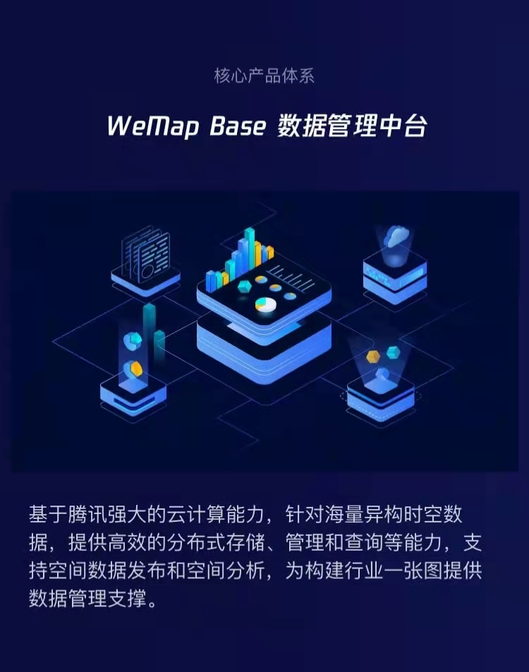 基于腾讯强大的云计算能力、针对海量异构时空数据,提供高效的分布式存储、管理和查询等能力,支持空间数据发布和空间分析,为构建行业一张图提供数据管理支撑。