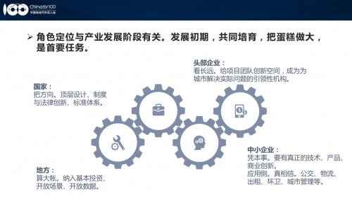 所以,中国电动汽车百人会秘书长兼首席专家张永伟认为,政府在“双智”中的作用,主要体现在两个方面。一方面是政府对于政策、法规、标准的牵头制定,把握好发展的方向,做好顶层设计问题,从而实现跨部门、跨行业发展的链接性工作。