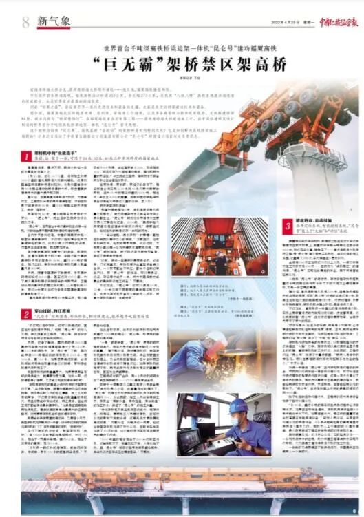 自2020年6月22日,世界首台千吨级架桥机“昆仑号”正式投用以来,受到了中央主流媒体的连续报道和社会各界的广泛关注;2021年12月31日,“昆仑号”更荣登“2021年度央企十大国之重器”,与“天问一号”探测器、神舟十二号、“华龙一号”核电机组、首款国产化芯片“伏羲”等硬核“IP”同台“C位”亮相,伫立在实现科技自立自强的“聚光灯”下,成为中央企业擦亮“国家名片” 、刷新“中国速度”,共同代言“中国智造”的最佳典范。