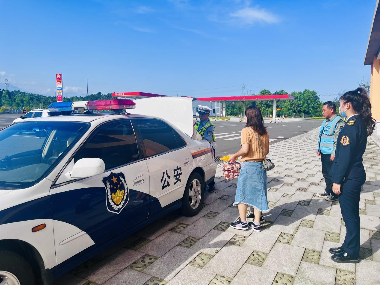 “不客气哈,姐姐,这都是我应该做的。快上车吧,我们的高速交警这就送你们去都江堰长途汽车站……”