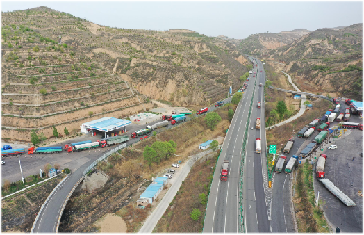 G20青银高速公路吴堡至绥德段位于陕西省北部黄土沟壑山区,全长57.4km,桥隧占比47.6%,重载货车占比达87.7%。2007年建成通车以来,是陕西榆林能源东出的重要通道,为服务区域经济的快速发展和人民群众便捷出行发挥了重要作用,特别是为中部省份煤炭保供作出了突出贡献。