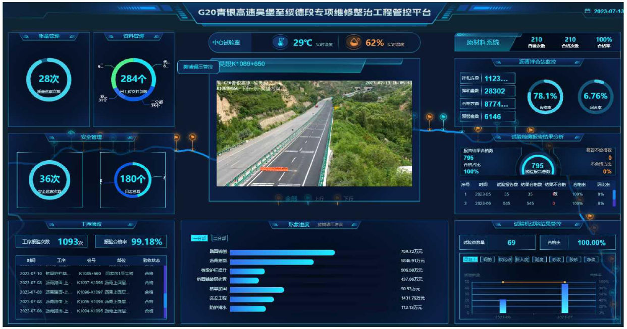 G20青银高速公路吴堡至绥德段专项维修整治工程预算总投资6.06亿元,于2023年5月全面开工,同期被交通运输部列为国家公路现代养护工程试点之一。项目探索解决大流量路段养护工程施工组织难、交通保畅难、废旧利用难、项目管理难等问题,在项目实施过程中贯彻全寿命周期养护理念,以质量最优、进度最快、影响最小、成本可控为目标,全力打造品质工程、样板工程。
